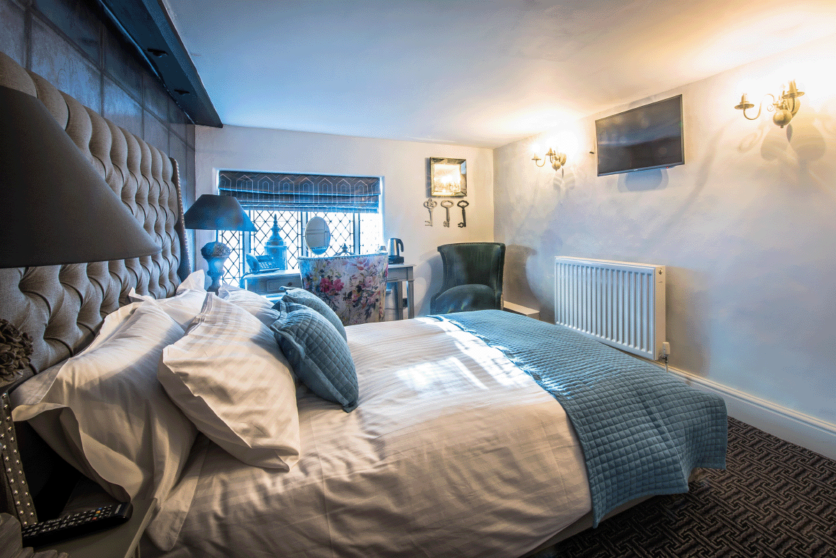 A comfortable king sized bed, flat screen TV and coffee making facilities. The modern bathroom is particularly spacious with a bath tub/shower.